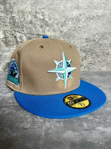 7 1 8 Topperz Seattle Mariners Tan Khaki Iced Sky Blue Two Tone Club Fitted Hat Ebay